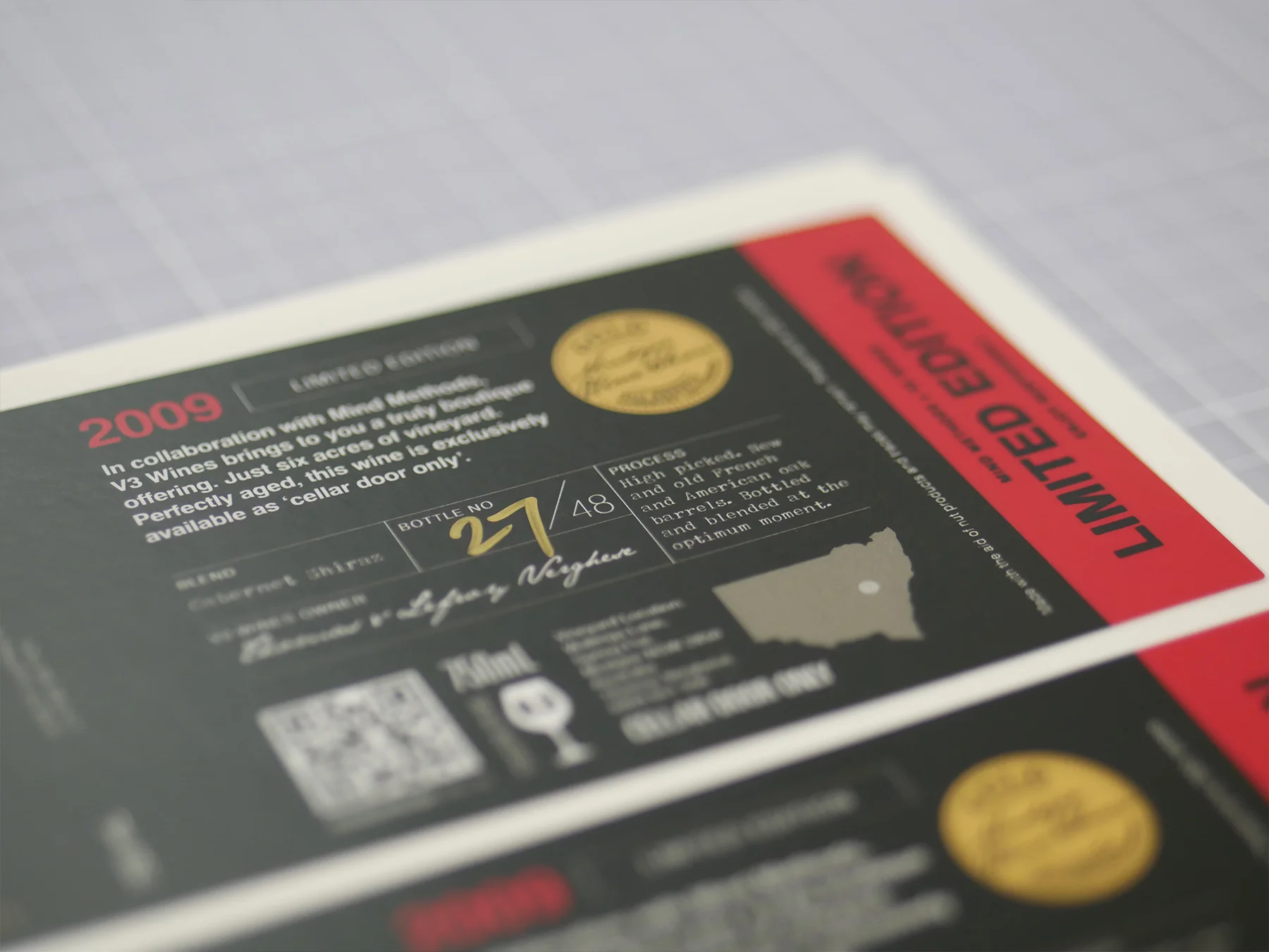 Take a look behind the scenes of the team putting together the final touches for the V3 Wine project. We have documented the limited edition production, a special batch of 2009 Cabernet Shiraz limited to only 48 bottles.